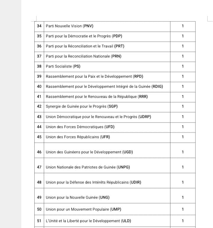 La liste complète des partis nouvellement certifiés a été rendue publique ce mercredi 15 octobre 2025, lors d’une cérémonie organisée à Conakry.