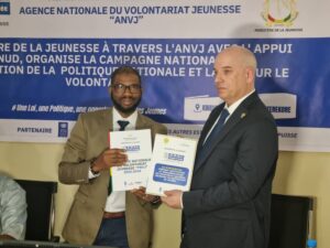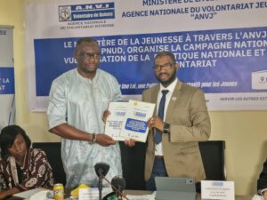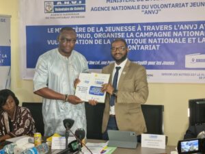Cette conference de presse a connu la présence des partenaires traditionnels de l’ANVJ dont Corps de la paix et France Volontaires respectivement représentés par M. Roland PRITCHETT et M. Guy Aho Tete Benissan. Pour la reconnaissance de leurs efforts collectifs dans la rédaction de cette politique, le DG a remis officiellement des copies des deux documents aux partenaires au nom de Monsieur le Ministre de la jeunesse, Mamadou Cellou BALDE.