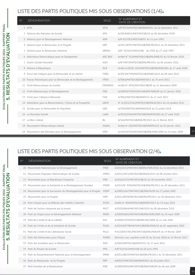 Le rapport précise que les partis mis sous observation peuvent continuer leurs activités durant cette période. Cependant, si les irrégularités relevées ne sont pas corrigées dans le délai imparti, le ministre de l’Administration du territoire et de la décentralisation pourrait ordonner la suspension des partis en question.